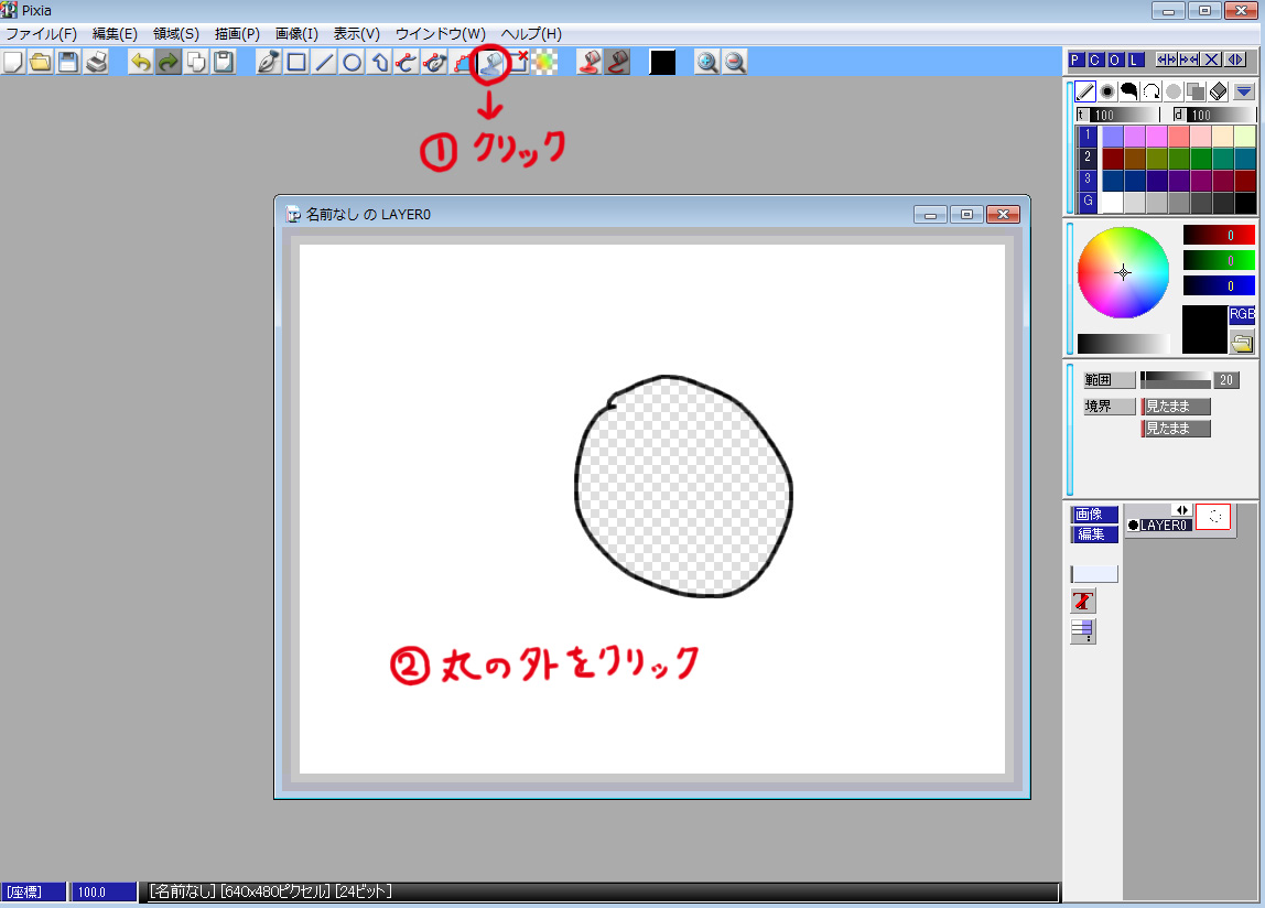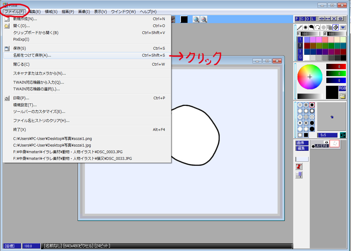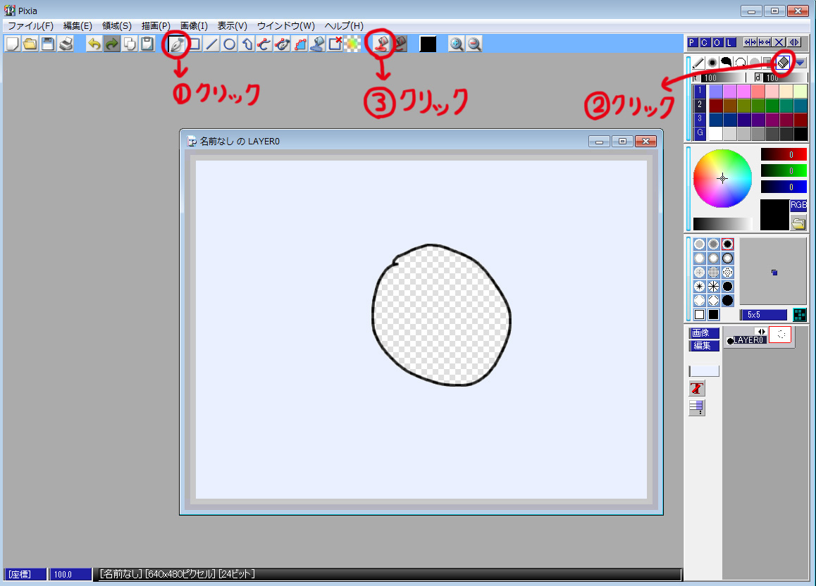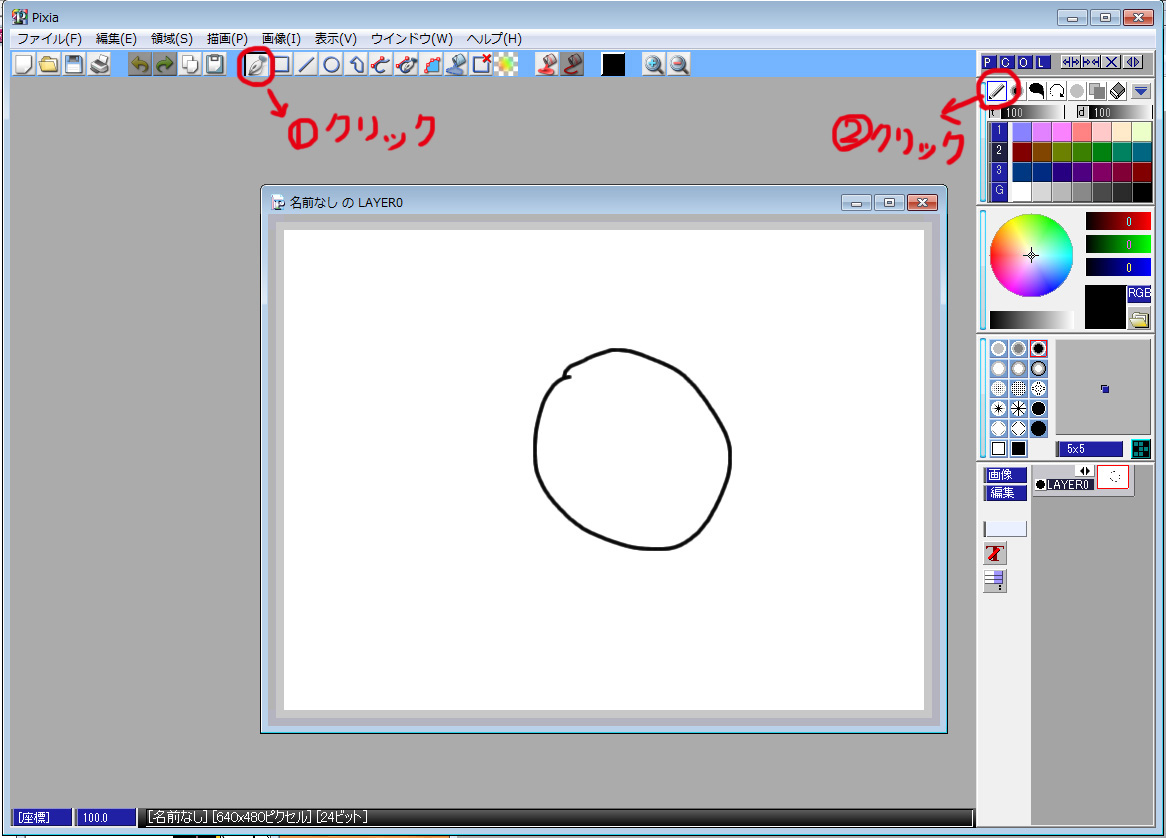 イラストの描き方は他の方がサイトを作っていたりするので、そちらをご覧ください