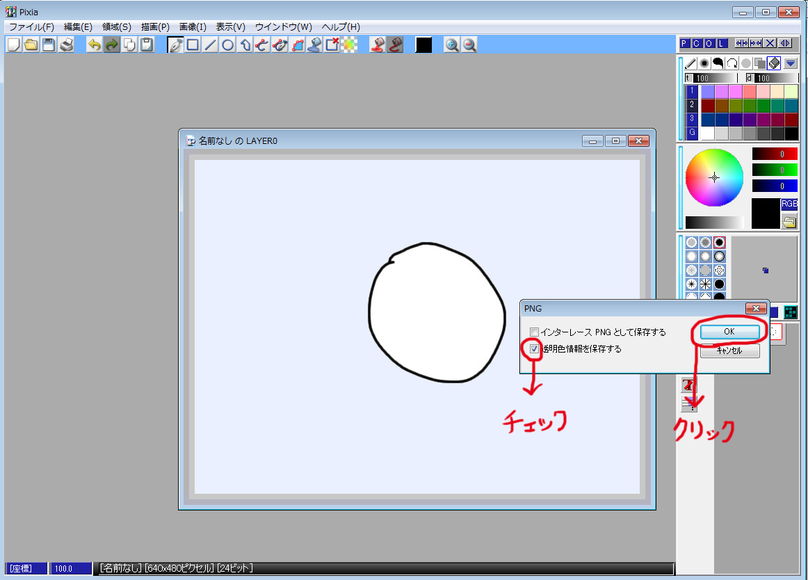 一応gifでも透過できますが、漫画チャットで使う事が前提なので、ここはあえてpngです