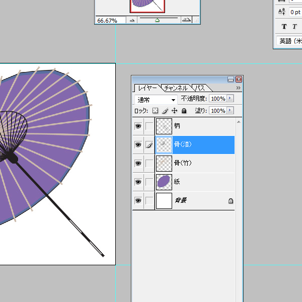漆の骨にも同じ様に新規レイヤーを重ね、楕円ツールの縁部分を黒い色で影を付けます