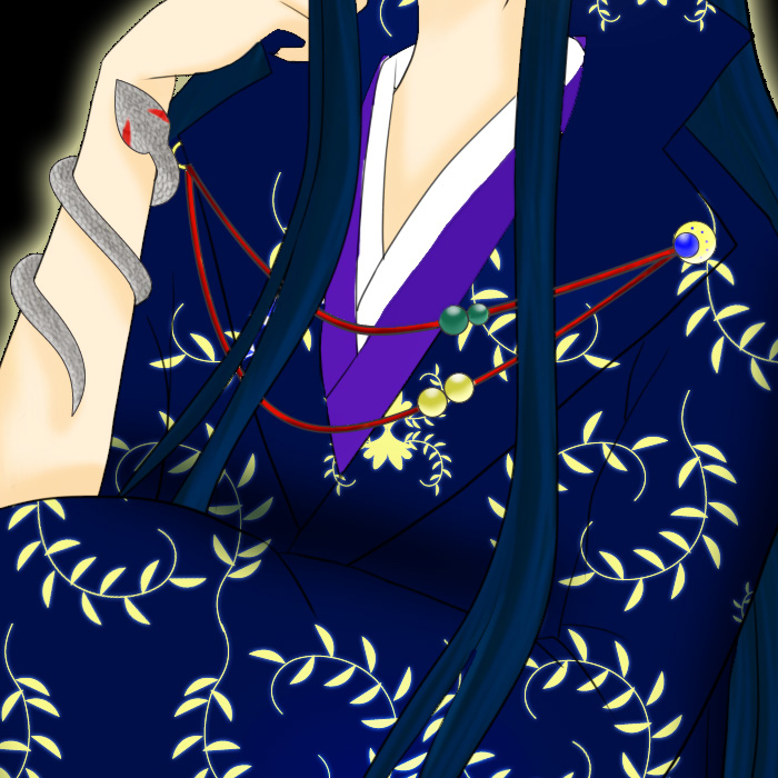 折角なので、着物の模様を背景にしてみました。ついでに御簾の模様も着物柄です。